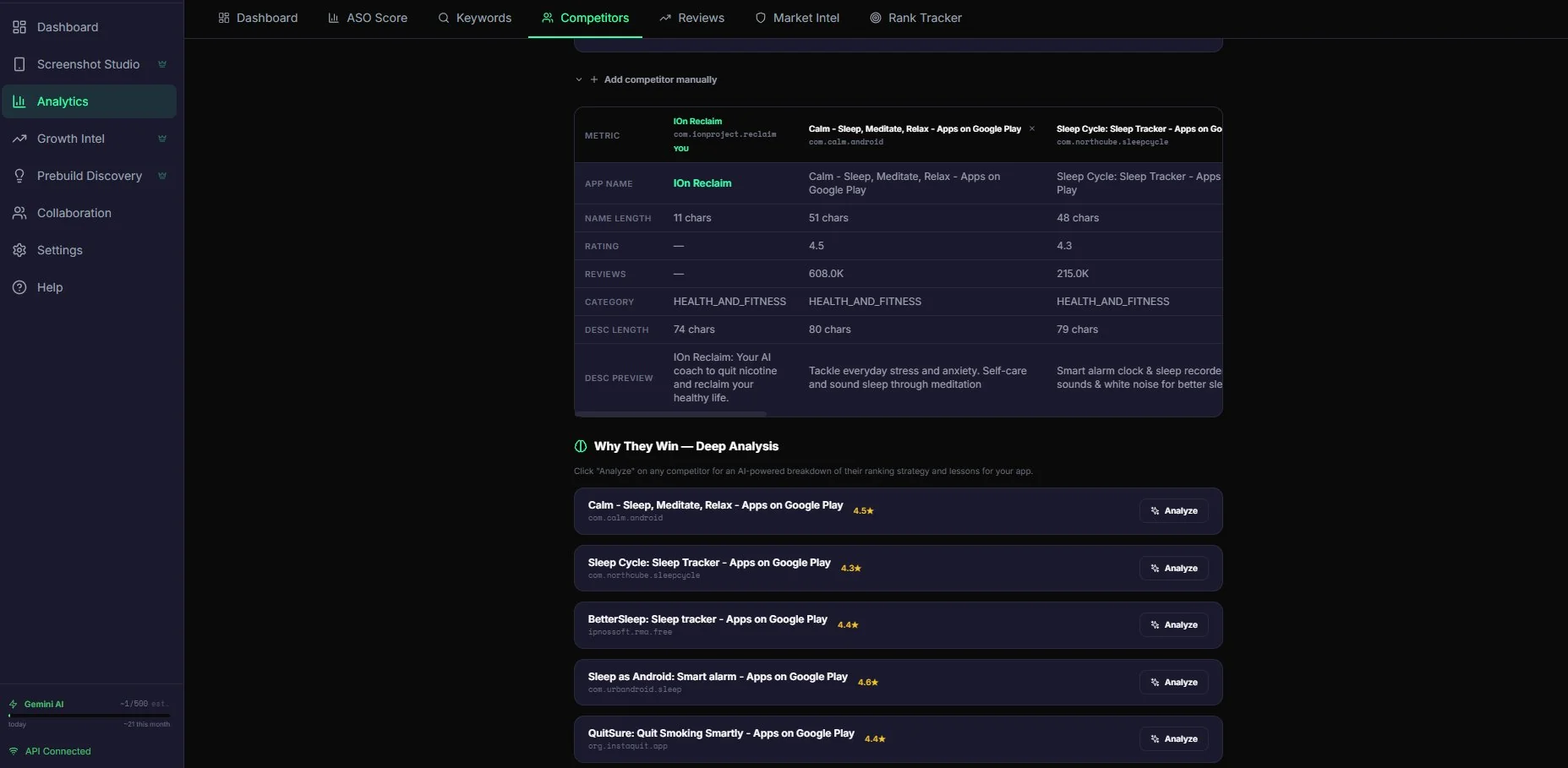 The only AI-powered Google Play publishing and growth intelligence platform. Guided wizard, AI descriptions, ASO scoring, competitor intel - all in one native desktop app.